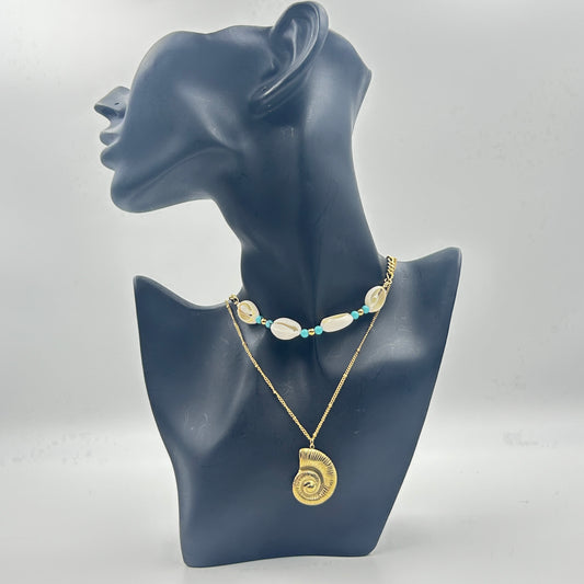 Double Layered Shell necklace 18k Yellow Gold Plated