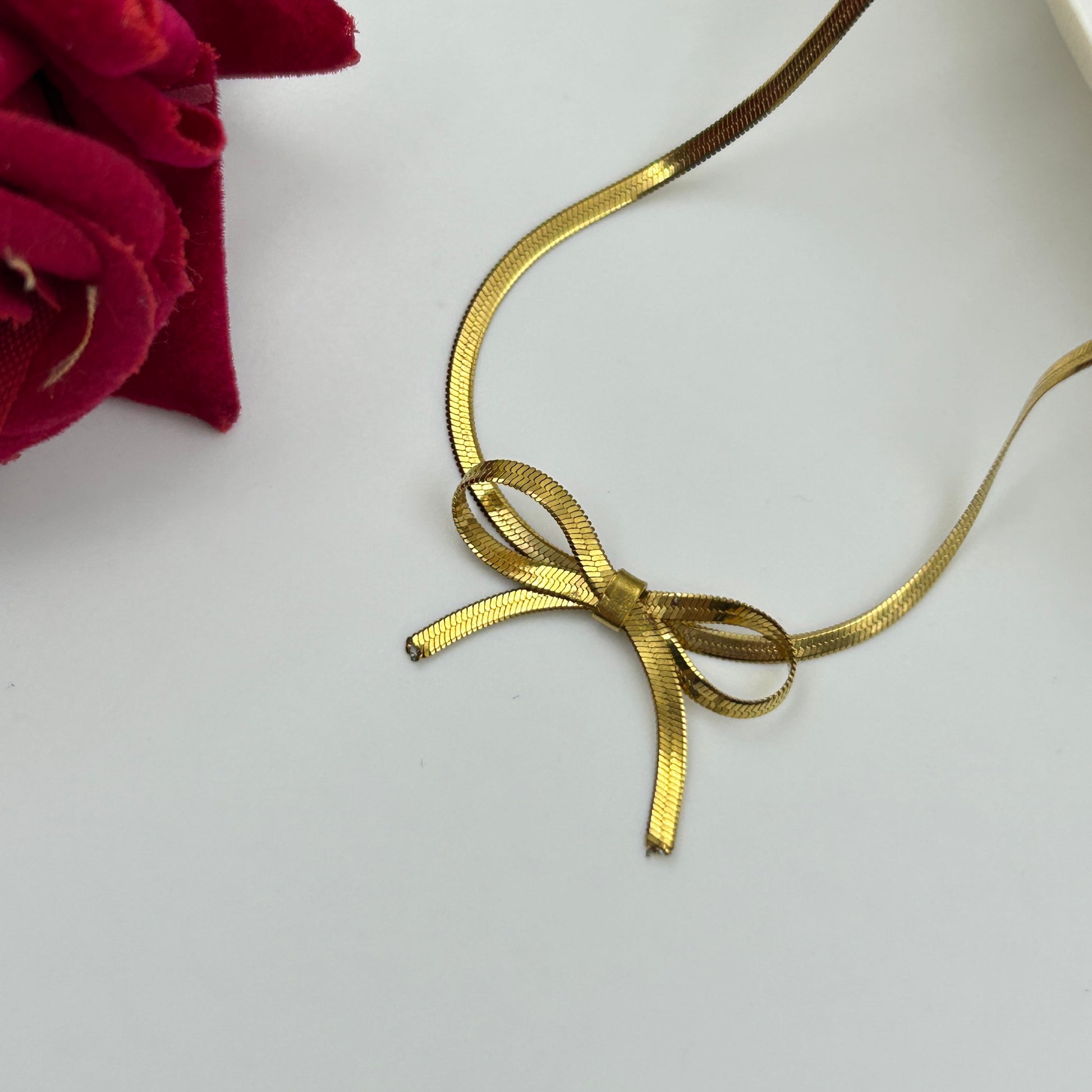 Side Bow Necklace 18k gold plated